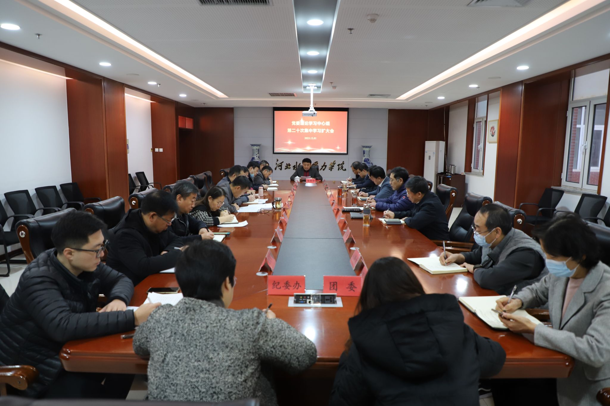 12月1日上午,我校党委理论学习中心组召开2023年第二十次集中学习扩大会,学习习近平总书记关于宪法的重要论述、习近平总书记2022年发表的署名文章《谱写新时代中国宪法实践新篇章——纪念现行宪法公布施行40周年》。党委书记张效松主持会议,党委理论学习中心组全体成员、学生工作部、教师工作部、校团委、马克思主义学院负责人以及各系党总支书记参加会议。