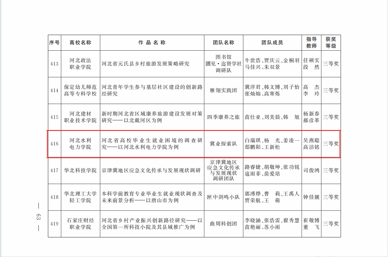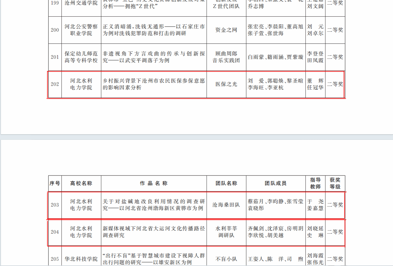 近日,共青团河北省委、河北省社会科学院以及河北省学生联合会公布了关于2023-2024年度河北省大学生“调研河北”社会调查活动情况,我校沧海桑田调研队《关于对盐碱地改良利用情况的调查研究——以河北省沧州渤海新区黄骅市为例》、水利莘莘调研队《新媒体视域下河北省大运河文化传播路径调查研究》、医保之光调研队《乡村振兴背景下沧州市农民医保参保意愿的影响因素分析》分别在活动中荣获二等奖,冀业探索调研队《河北省高校毕业生就业困境的调查研究——以开云·官方端网页版登录入口为例》荣获三等奖。调研活动自2024年1月开展以来,校团委精心谋划部署,广泛宣传动员,吸引了本校32名教师、100多名同学参加调研,共计报送27个参赛项目,最终4个项目顺利结项并获奖。