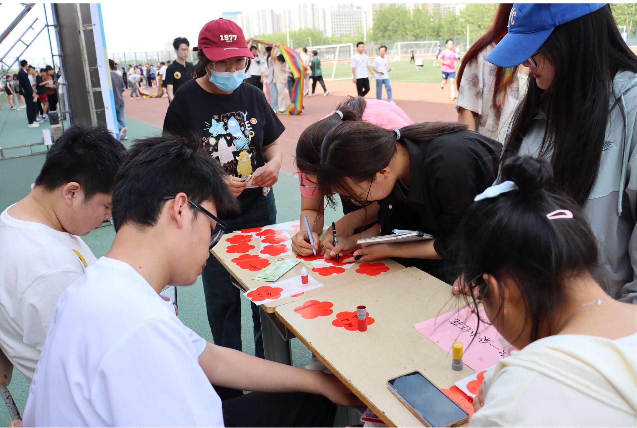 本次趣味心理运动会设置“智者竞赛区”“强者挑战区”“团队共创区”“心灵能量区”四个竞赛区域。在“智者竞赛区”同学们耐心、专注地共同创设了沉浸式体验氛围;在“强者挑战区”同学们调动全身力量,随着身体的伸展,心情也得以舒展;在“团队共创区”同学们自发组队,创造出团队独有的节奏和步伐,增强了团队认同感,体验了人际协作中的包容与理解;在“心灵能量区”同学们积极发现自身优点,欣赏自我,悦纳自我。