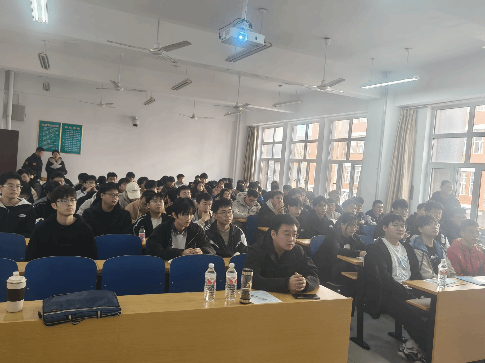 随后,荀致远结合专业特点和当前的就业形势,为同学们的职业规划及求职应聘提供了宝贵的建议。互动环节中,同学们踊跃积极,气氛热烈,荀致远耐心解答了同学们的问题,鼓励同学们要勇于挑战自我,保持积极心态,勇敢面对各种各样的挑战和竞争,及时总结经验教训,不断提升自己的能力和素质。